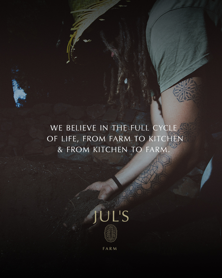 FOOD IS A FORM OF COMFORT AND PLEASURE; THE MERGING OF DIFFERENT CULINARY TRADITIONS, A SEARCH FOR FRESH, LOCALLY GROWN INGREDIENTS, A NEW ORGANIC FARM- THESE MAKE UP JULS MENU. WE CALL IT “A NO LIMIT CUSINE”