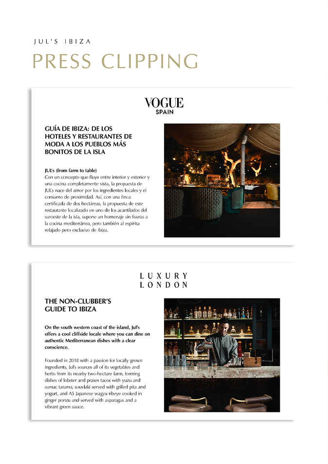 SOPHISTICATED, BOTH DESIGN AND RELAXED, JUL'S IBIZA OFFERS A TIMELESS PARENTHESIS, LIKE A TRIP TO THE PLEASURES OF THE SENSES.